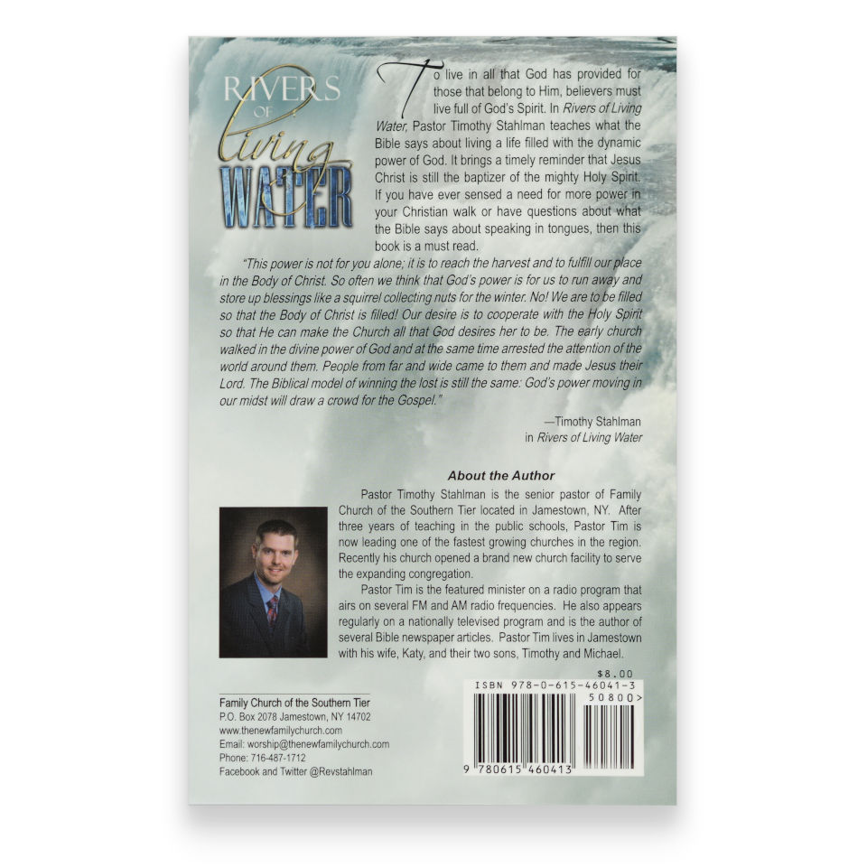 To live in all that God has provided for those that belong to Him, believers must live full of Godโs Spirit. In Rivers of Living Water, Pastor Timothy Stahlman of Family Church Jamestown teaches what the Bible says about living a life filled with the dynamic power of God. It brings a timely reminder that Jesus Christ is still the baptizer of the mighty Holy Spirit. If you have ever sensed a need for more power in your Christian walk or have questions about what the Bible says about speaking in tongues, then this book is a must read.